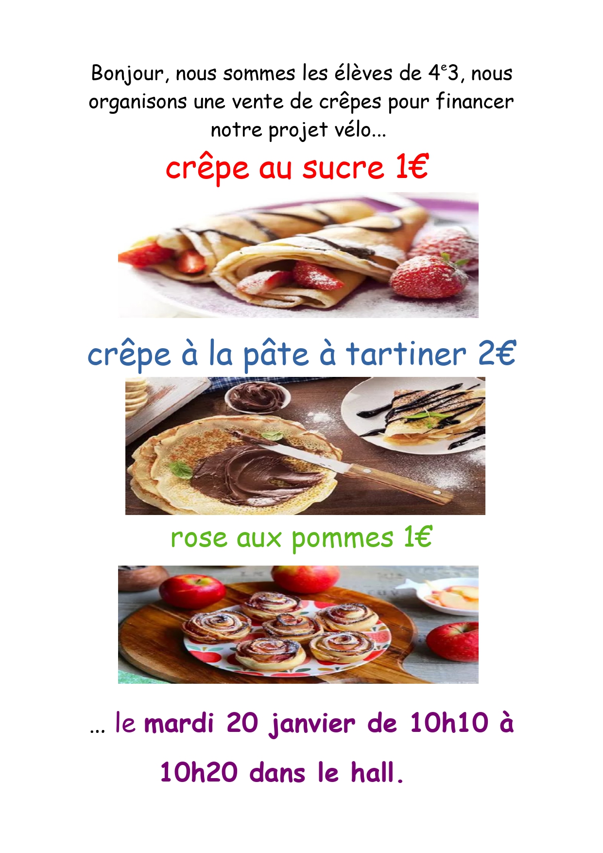 🥞 Vente de crêpes – Projet vélo des 4e3 🚲