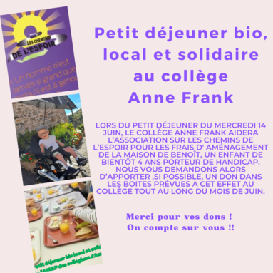 Le collège offre un petit déjeuner bio et local à tous les élèves de 6e et 5e ce mercredi 14 juin !